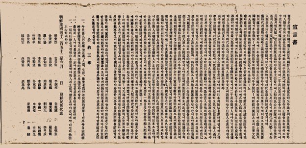(인류의) 양심이 (지금 우리와) 동반하며 (보편적 가치의) 진리가 병진, 같이 감으로 우리는 반드시 승리한다. 모두 일어나 궐기 앞으로 나가자. 에서 당시 29살 청년 최남선의 패기와 열정이 느껴집니다.